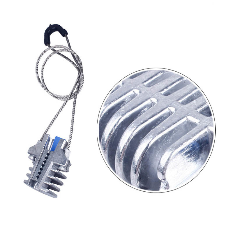 ตัวหนีบความตึงสำหรับสายเคเบิล fig-8 ที่มีสแตนเลสหรือตัวส่งสารโลหะผสมอลูมิเนียมได้รับการพัฒนาเพื่อยึดสายเคเบิลใยแก้วนำแสงกับตัวส่งเหล็กในระหว่างการก่อสร้างสายใยแก้วนำแสงส่งแคลมป์ยึดเหล่านี้ปรับได้เองและเหมาะสมกับการใช้งานกับร่อซู้ลเหล็กในระหว่างการยึดสายไฟเบอร์ออปติก จะรับประกันว่าฉนวนของสายเคเบิลจะไม่เกิดความเสียหายหรือการลื่นไถล หากได้รับภาระตามที่ระบุ